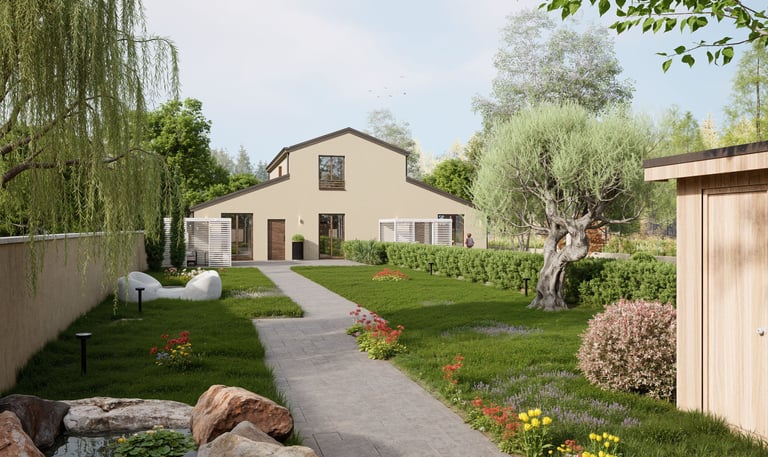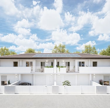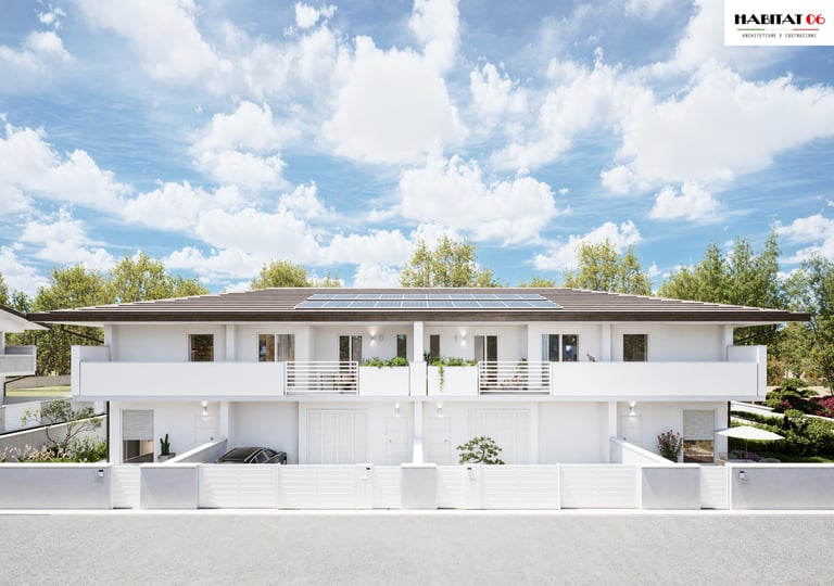 Questa nuova costruzione interpreta l’abitare contemporaneo con linee pulite, volumi essenziali e una presenza architettonica elegante, pensata per durare nel tempo. Le facciate chiare, i dettagli scuri della copertura e le proporzioni equilibrate creano un insieme moderno e sobrio, inserito in un contesto residenziale ordinato e riservato. Il progetto valorizza la qualità della vita quotidiana: spazi ampi, grande luminosità e una continuità naturale tra interno ed esterno, per vivere la casa in modo fluido e funzionale.
